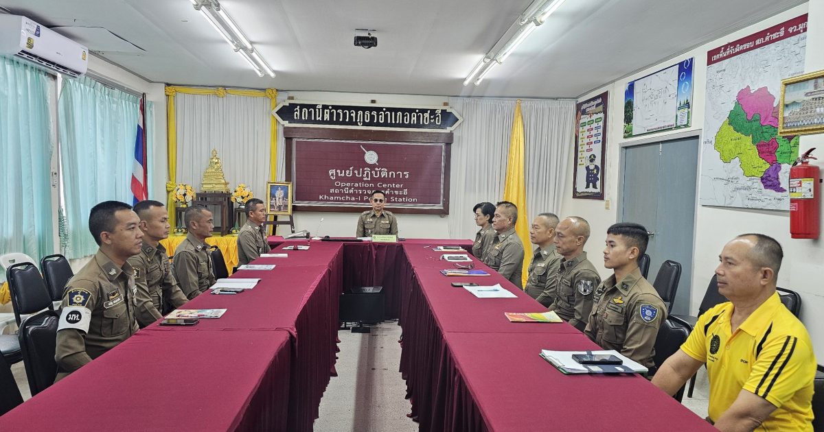 วันที่ ๓ ก.ค.๖๘ พ.ต.อ.ศรีนคร นัยวัฒน์ ผกก.สภ.คำชะอี ประชุดชี้แจง กำชับตรวจสอบการจัดเก็บของกลาง