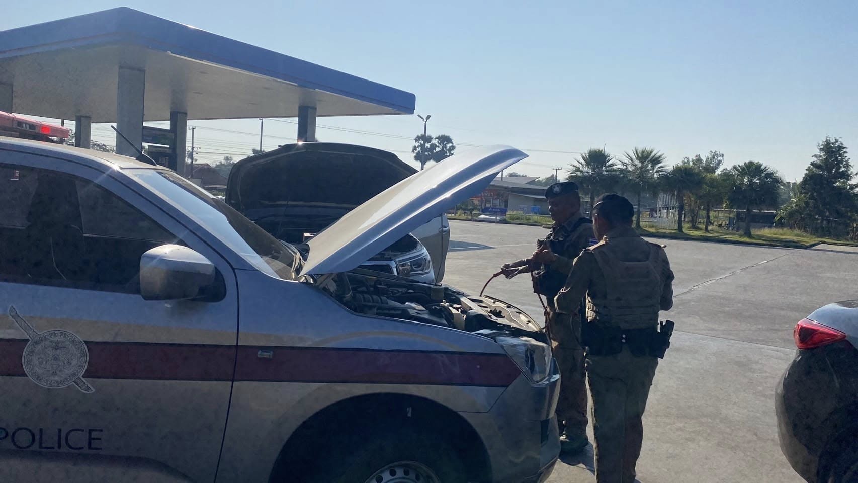 ช่วยเหลือประชาชนกรณีแบตเตอรี่รถยนต์หมด ไม่สามารถสตาร์ทรถติดได้เหมือนเดิม จึงตามช่างมาช่วยแก้ไขจนสามารถสตาร์ทรถติดและเดินทางต่อไปได้