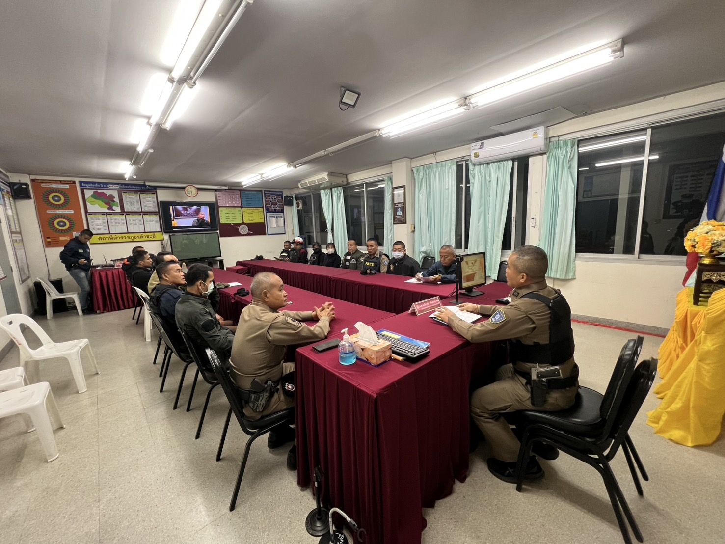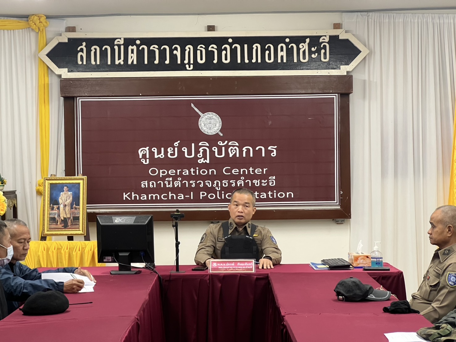 พ.ต.ท.พัฒนา คาดพันโน รอง รอง ผกก.สส.สภ.คำชะอี ปล่อยแถวเพื่อออกปิดล้อมตรวจค้น และ