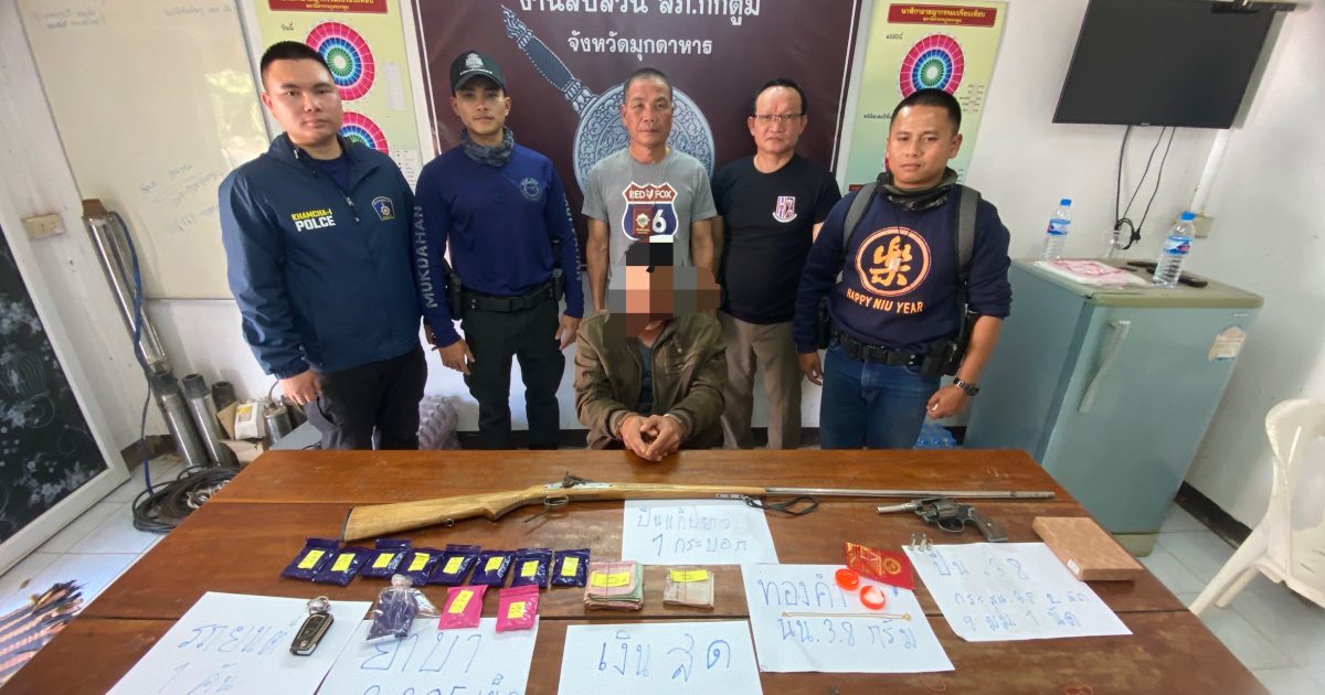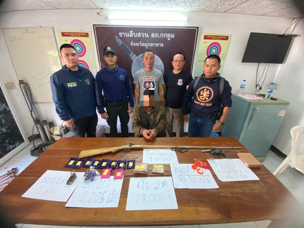 ร่วมกันจับกุม ชายไทย ตำบลกกตูม อำเภอดงหลวง จังหวัดมุกดาหาร
