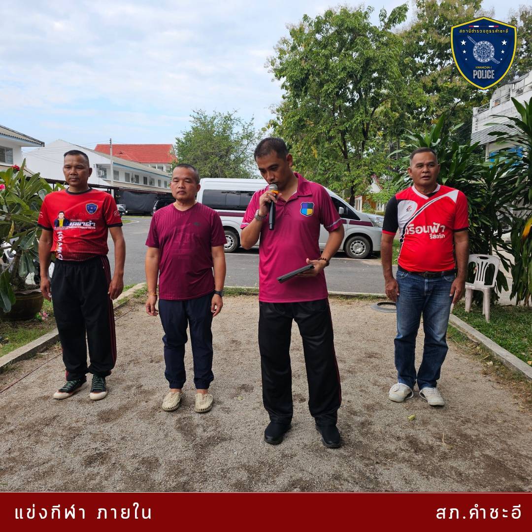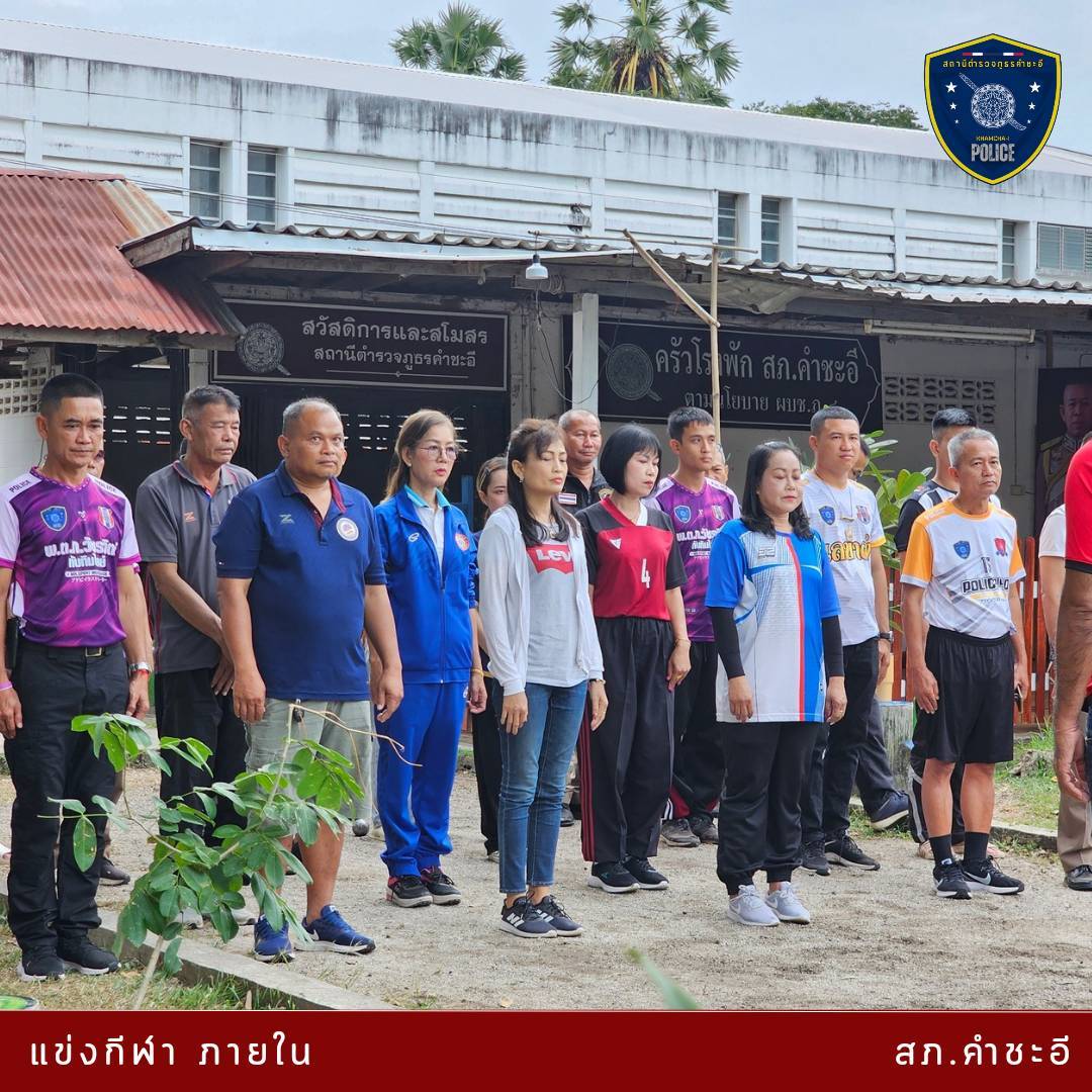 พร้อมทั้งข้าราชการตำรวจในสังกัด และทีมแม่บ้านตำรวจ สภ.คำชะอี ร่วมทำพิธีเปิดการแข่งขันกีฬาเปตอง ภายในสังกัด ประเภท เปตองคู่ผสมชาย&หญิง (แม่บ้าน ตร.) สภ.คำชะอี โดยมีเงินรางวัลชนะเลิศลำดับที่ ๑ เป็นเงิน ๑,๕๐๐ บาท