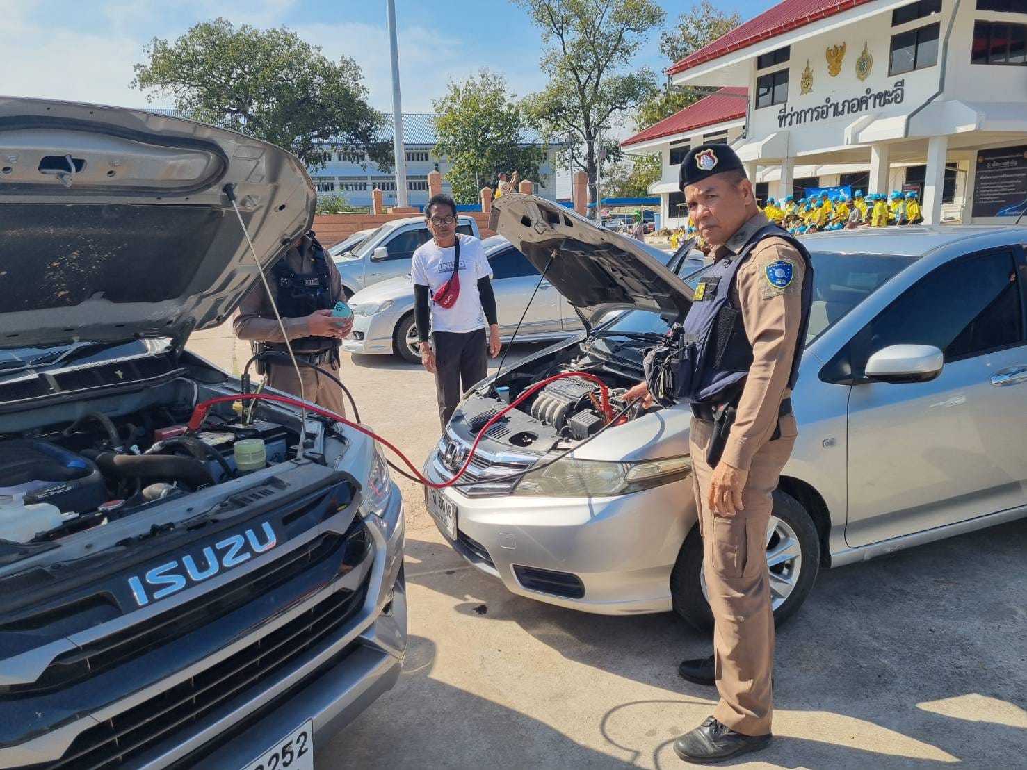 ช่วยเหลือประชาชนรถยนต์สตาร์ทไม่ติด ด้วยการพ่วงสายแบตเตอรี่จนสามารถสตาร์ทรถติดเดินทางไปต่อได้