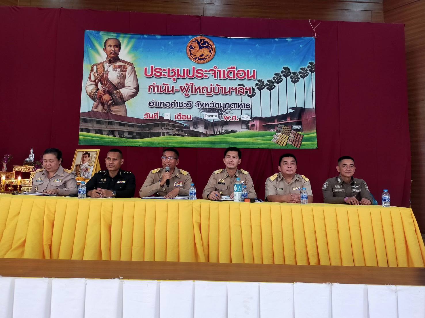 ประชุมกำนัน/ผู้ใหญ่บ้านฯและร่วมกันรณรงค์ตามมาตรการควบคุมการเผาฯ เพื่อลดปัญหาผลกระทบจากฝุ่นละอองขนาดเล็ก( PM ๒.๕)ณ ห้องประชุมศาลาประชาคมอำเภอคำชะอี จ.มุกดาหาร